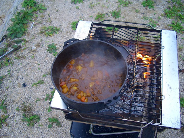 1日目 夕食B 慶一朗が焚き火とダッチオーブンで作ったカレー。